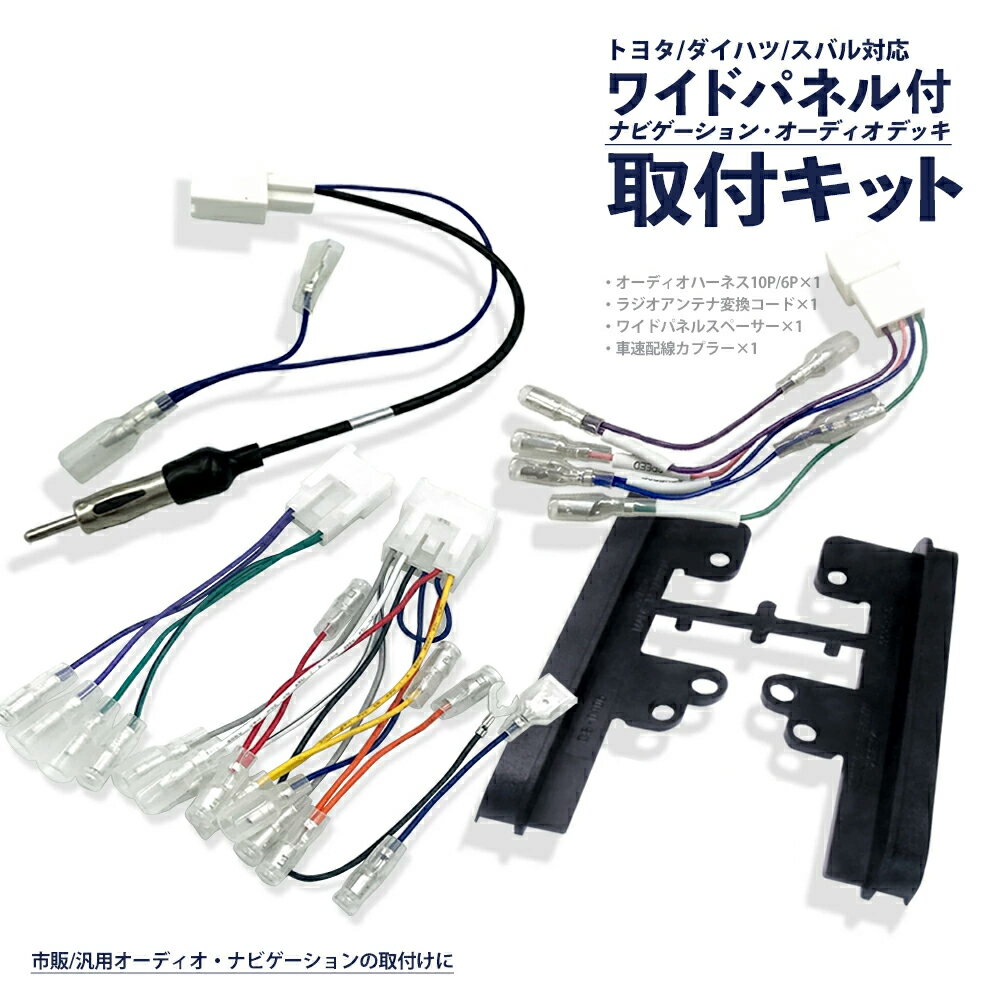★★★トヨタ・ダイハツ・スバル用 10P/6P カプラー オーディオ(ナビゲーション)取り付け配線キット ワイドパネル、車速・パーキング・リバース コネクタ、ラジオアンテナ変換コード付き★★★ ■キット内容 10Pカプラ 配線変換 ×1 6Pカプラ 配線変換 ×1 ハーネス接続要領書(取扱説明書) ×1 ワイドパネル(L/Rセット) ×1 車速・パーキング・リバース コネクタ 5P カプラー ×1...